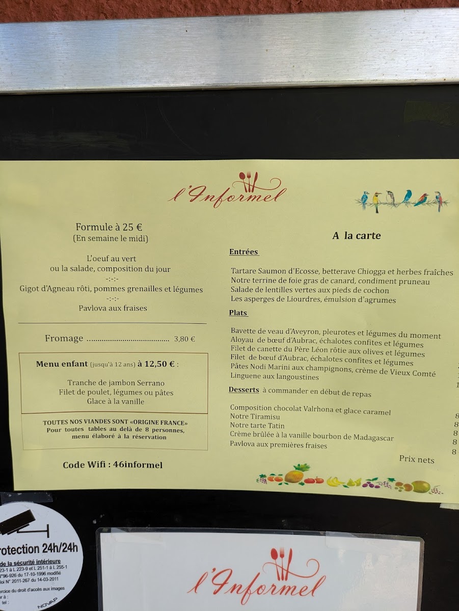 The mains keep that same balance between refinement and warmth: Filet de Beuf and Bavette D'aloyau Et Légumes de Saison offer straightforward satisfaction with a seasonal, produce-led accent, while Côtelettes d'agneau Du Quercy Façon Provençale reads as rustic and aromatic, leaning into Provençal character. If you prefer a more modern, sauced profile, Paleron de Boeuf Teriaki adds a glossy, savory-sweet twist that contrasts nicely with the more classic beef and lamb options.